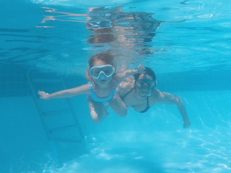 Gegen 09:00 gab es ein richtig gutes Frühstück direkt am Meer. Emelie entdeckte pinken Litschisaft und Waffeln mit Obst für sich, während Conny und Tom bei Omeletts blieben. Danach wurde offiziell Pooltime ausgerufen. Zuerst machte sich Emelie mit der Schwimmweste mit dem Pool vertraut, stellte aber schnell fest, dass sie schon ein paar Meter ohne schwimmen kann. Erfolgreich ging es von Leiter zu Leiter – der Kopf zwar immer unter Wasser, aber die Bewegungen sind schon voll da. Ein weiteres Highlight war, dass Tom uns mit der GoPro filmte.