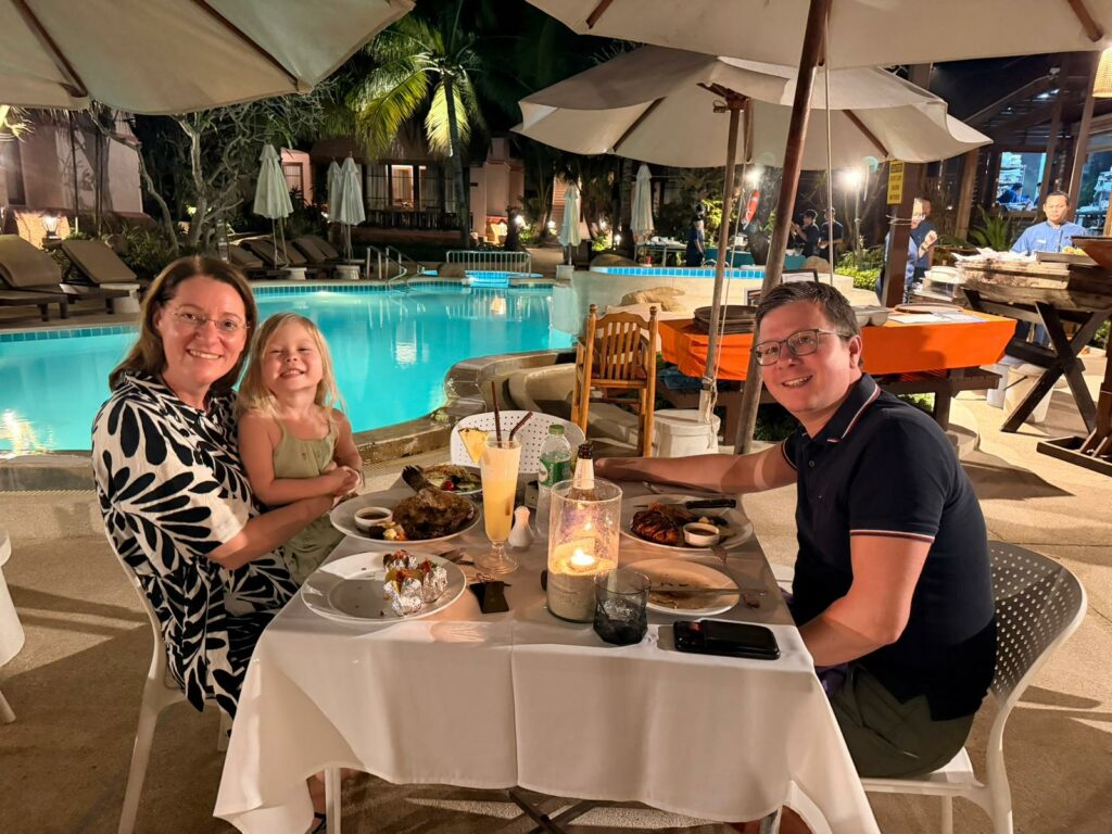 Der Nachmittag verlief eher ruhig. Emelie durfte lange schlafen, damit sie fürs Abendprogramm fit war. Dann ging es wieder an den Pool, wo wir Jonas (5) aus Hamburg kennenlernten, der gleich ein paar Runden Memory mit uns spielte.
