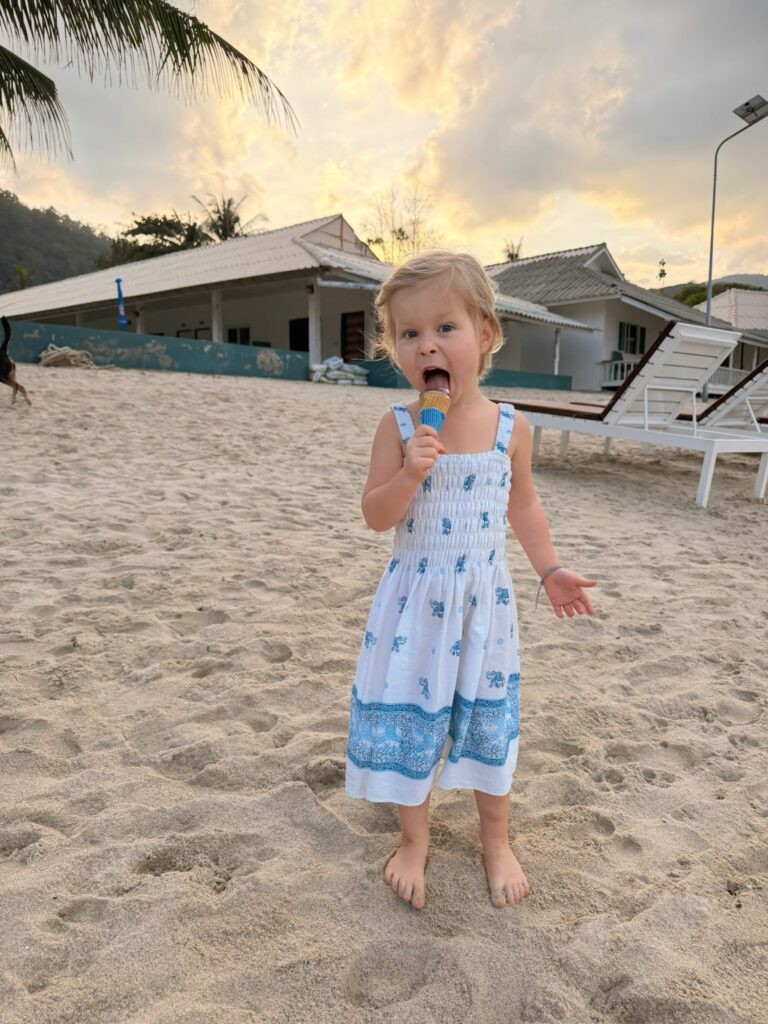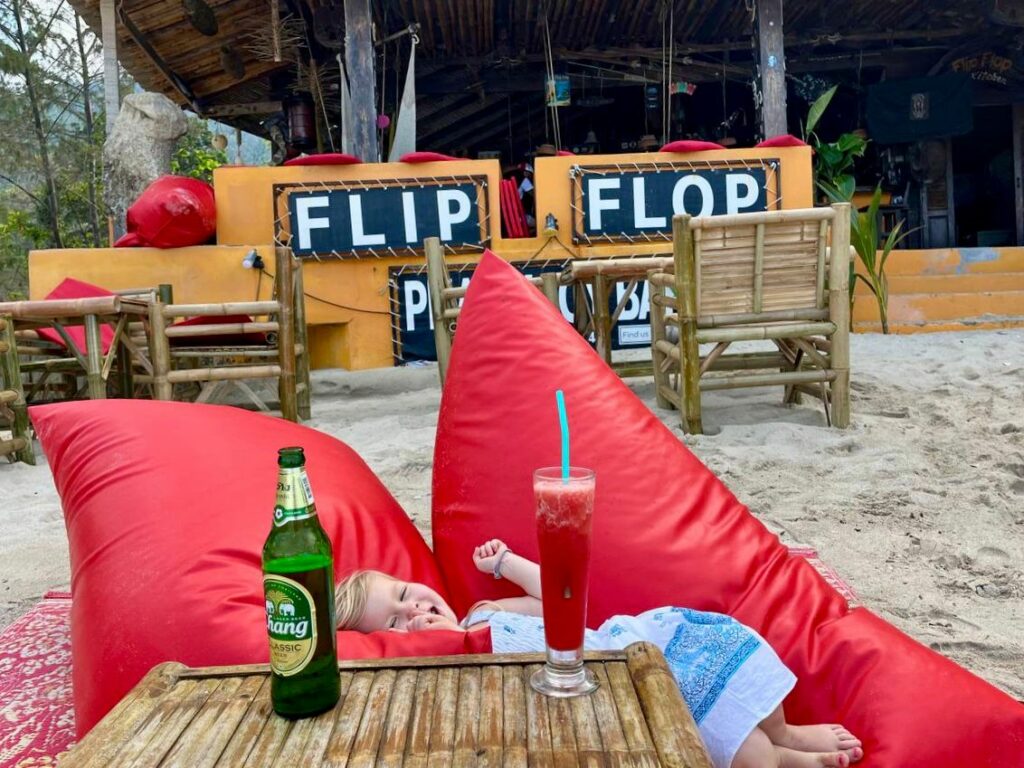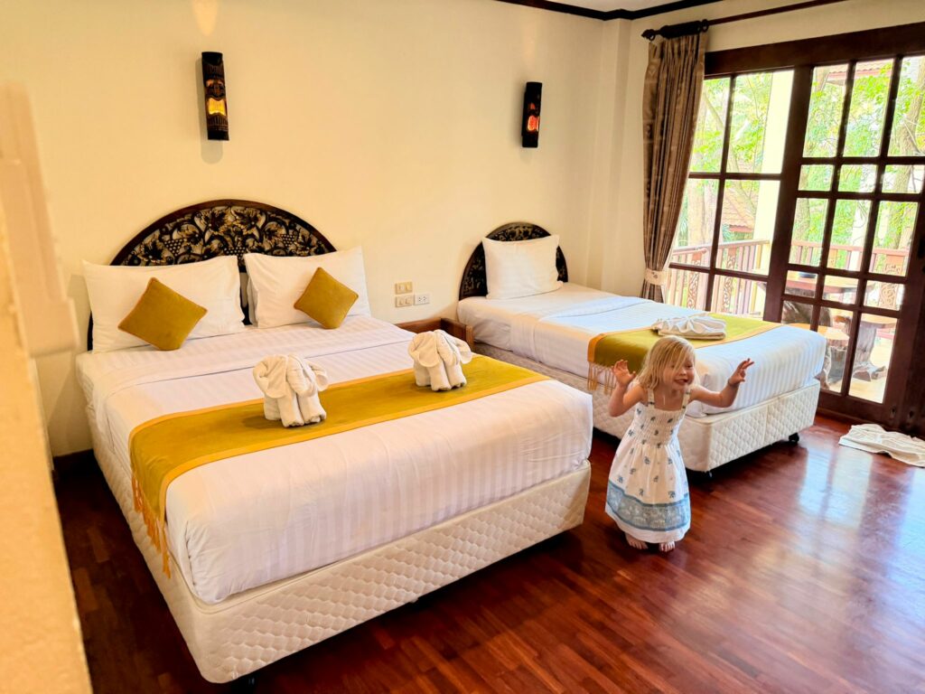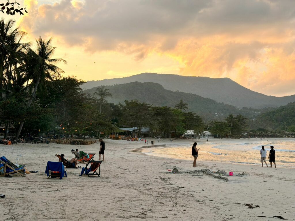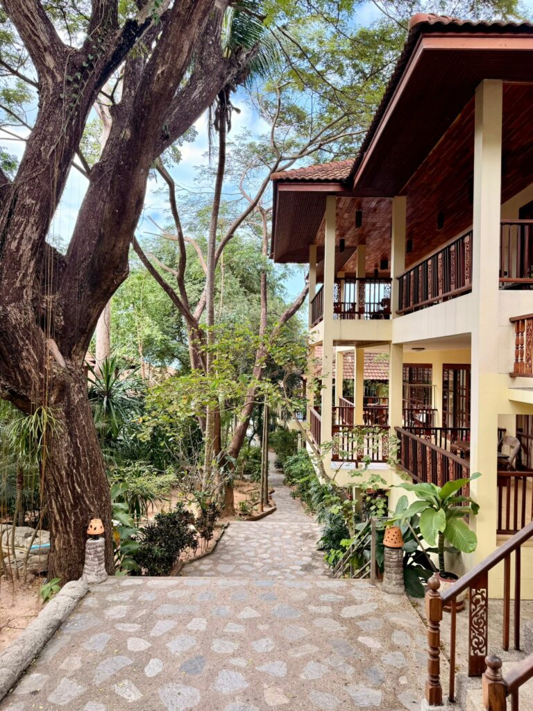Auf Koh Phangan angekommen, wartete unser Fahrer bereits auf uns und brachte uns ins Havana Beach Resort. Dort bezogen wir ein schönes Zimmer mit Balkon im Garten. Nach dem Auspacken erkundeten wir noch das Gelände. Was sofort auffiel: Hier sind viele Familien mit Kindern unterwegs. Vermutlich liegt das an der kleinen Bucht mit nur wenigen Resorts, aber trotzdem guter Infrastruktur.