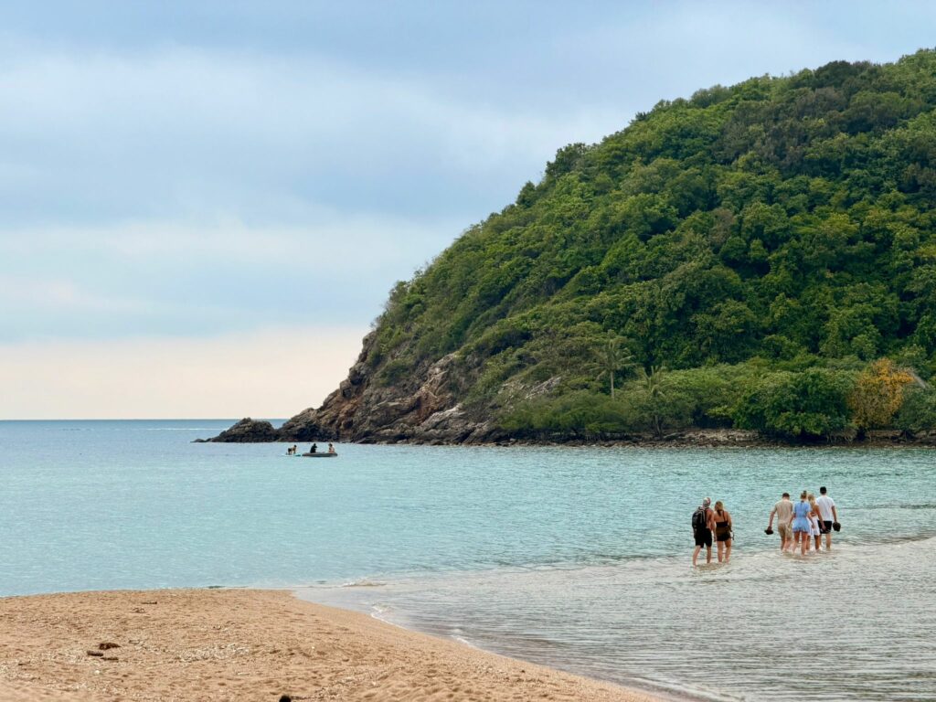 Gestärkt machten wir uns dann auf den Weg zum Ko Ma Beach. Hier wollten wir das Schnorcheln mit Emelie so richtig ausprobieren – und es wurde ein voller Erfolg. Mit Schwimmweste und zusätzlichen Schwimmreifen manövrierte Conny Emelie durchs Riff, gemeinsam mit Tom entdeckten sie Seegurken, kleine und große Fische sowie ganze Schwärme. Besonders die Engelsfische und die großen Papageienfische hatten es Conny angetan. Emelie konnte gar nicht aufhören, mit dem Finger in alle Richtungen zu zeigen, um auf die vielen Fische aufmerksam zu machen. Zum Abschluss setzte sie sich gemütlich in den Schwimmreifen und ließ sich entspannt wieder an Land ziehen.