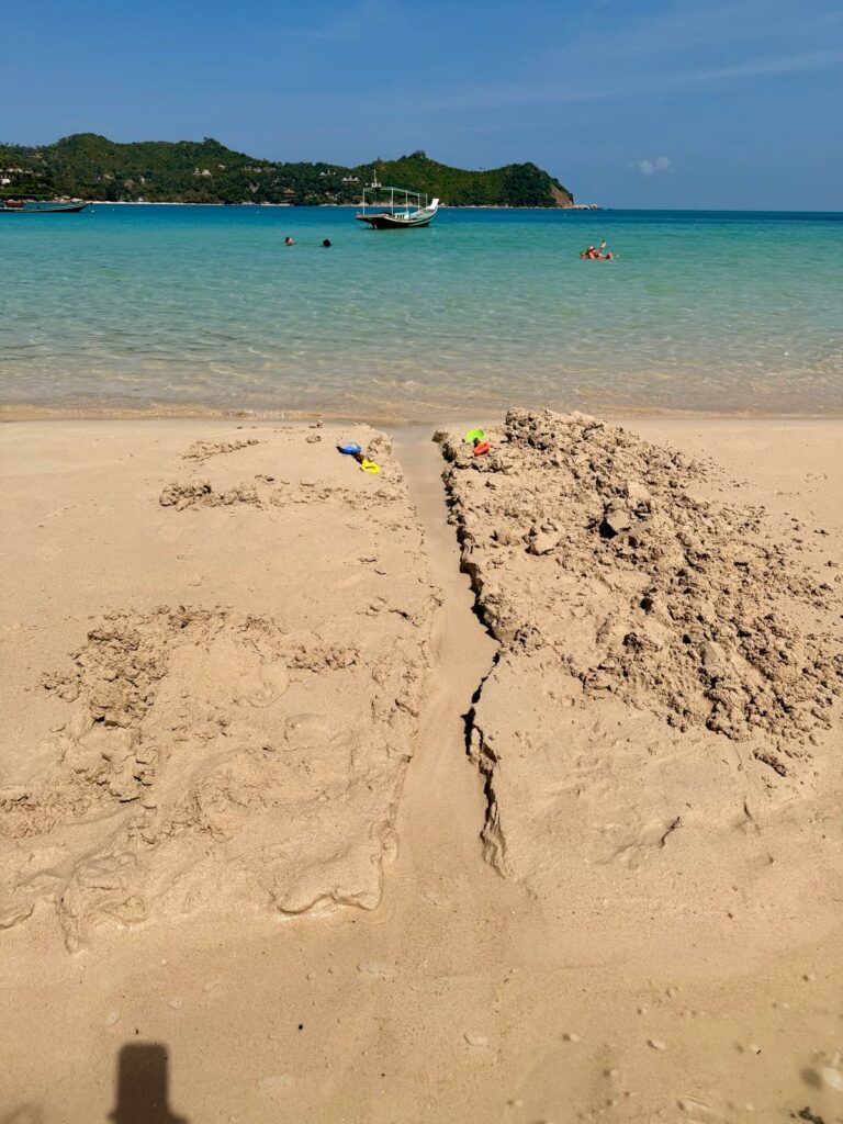 Heute stand wieder ein Reisetag am Programm. Am Vormittag wurden noch einmal alle Koffer gepackt und die letzten Stunden auf Koh Phangan mit Sandspielen am Strand genossen. Ein bisschen Abschiedsschmerz war schon dabei, aber gleichzeitig auch die Vorfreude auf das nächste Inselkapitel.