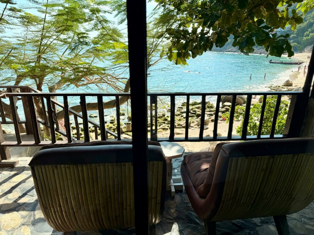Danach waren aber alle ziemlich hungrig und müde, also haben wir eines der beiden Restaurants in der Bucht ausprobiert. Das Ambiente war wirklich toll, das Essen in Ordnung – einzig die Kellner scheinen sich gerne mal zu verstecken. Mal sehen, wie sich das in den nächsten Tagen noch entwickelt.