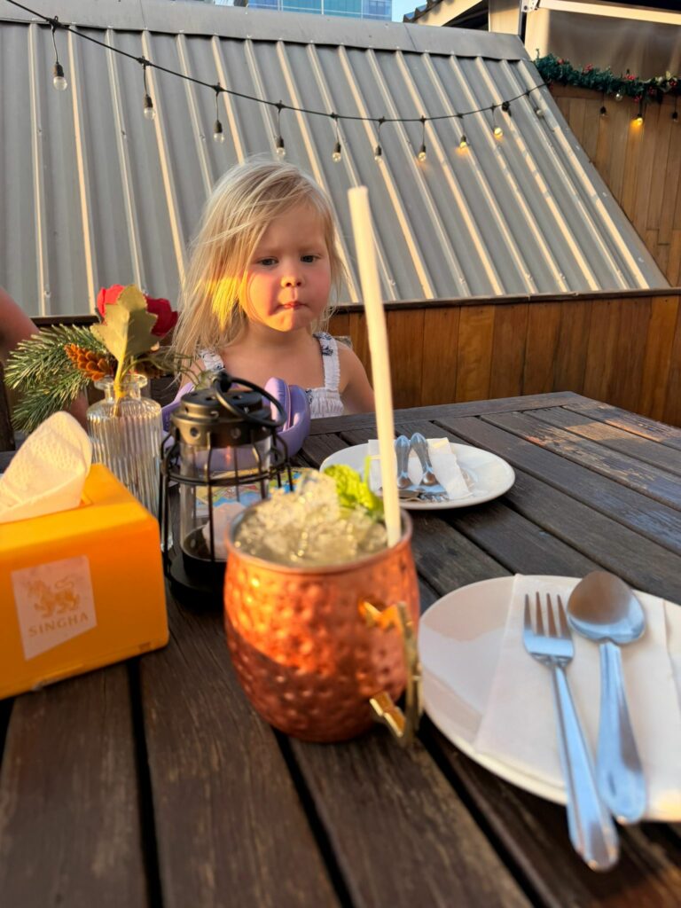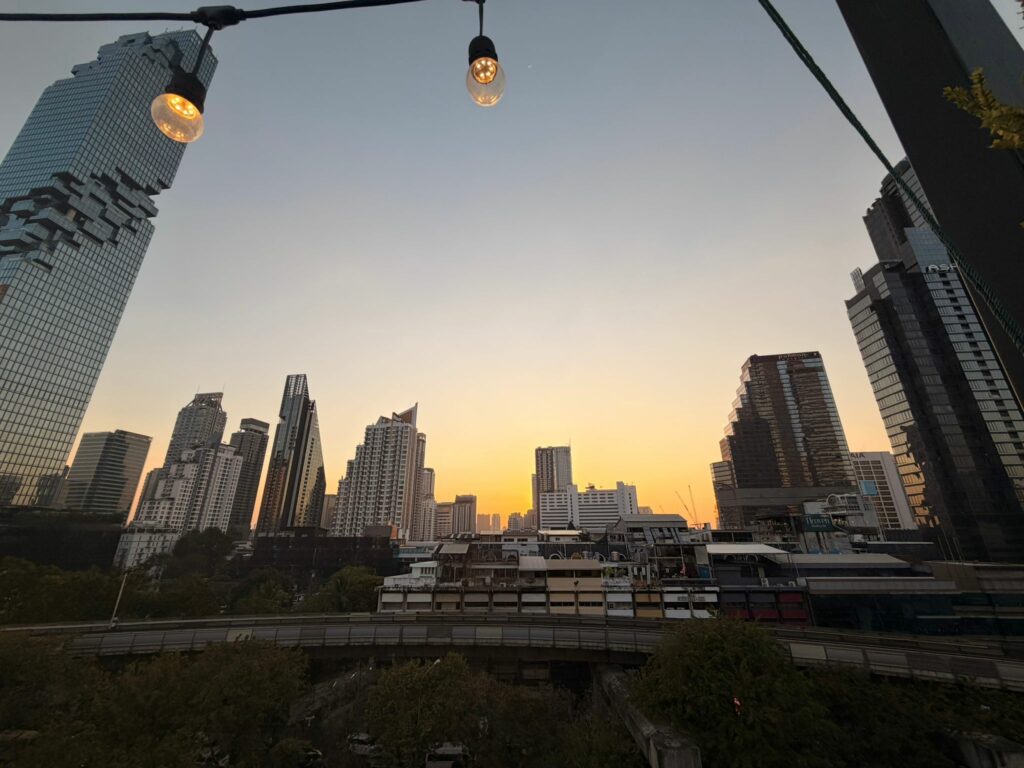 Für den Abend hatte Tom noch zwei Rooftop Bars ausgesucht. Hin ging es rasant mit dem Tuk Tuk, sehr zur Freude von Emelie. Zurück nahmen wir dann lieber den BTS Skytrain, um dem Stau zu entkommen.
